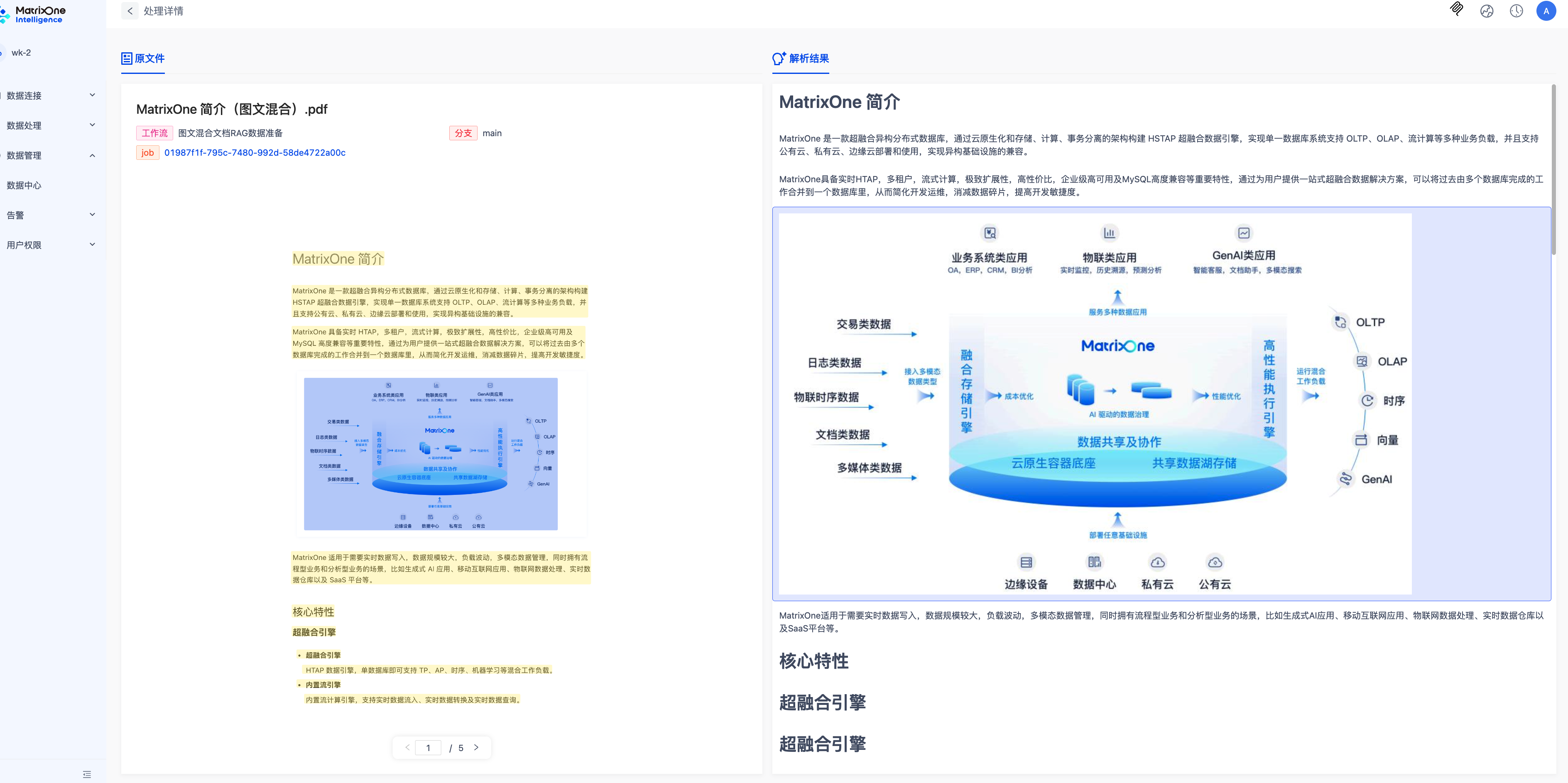 导航至数据中心,找到刚才工作流中选择的目标位置,点击文件右侧的预览按钮,查看处理结果